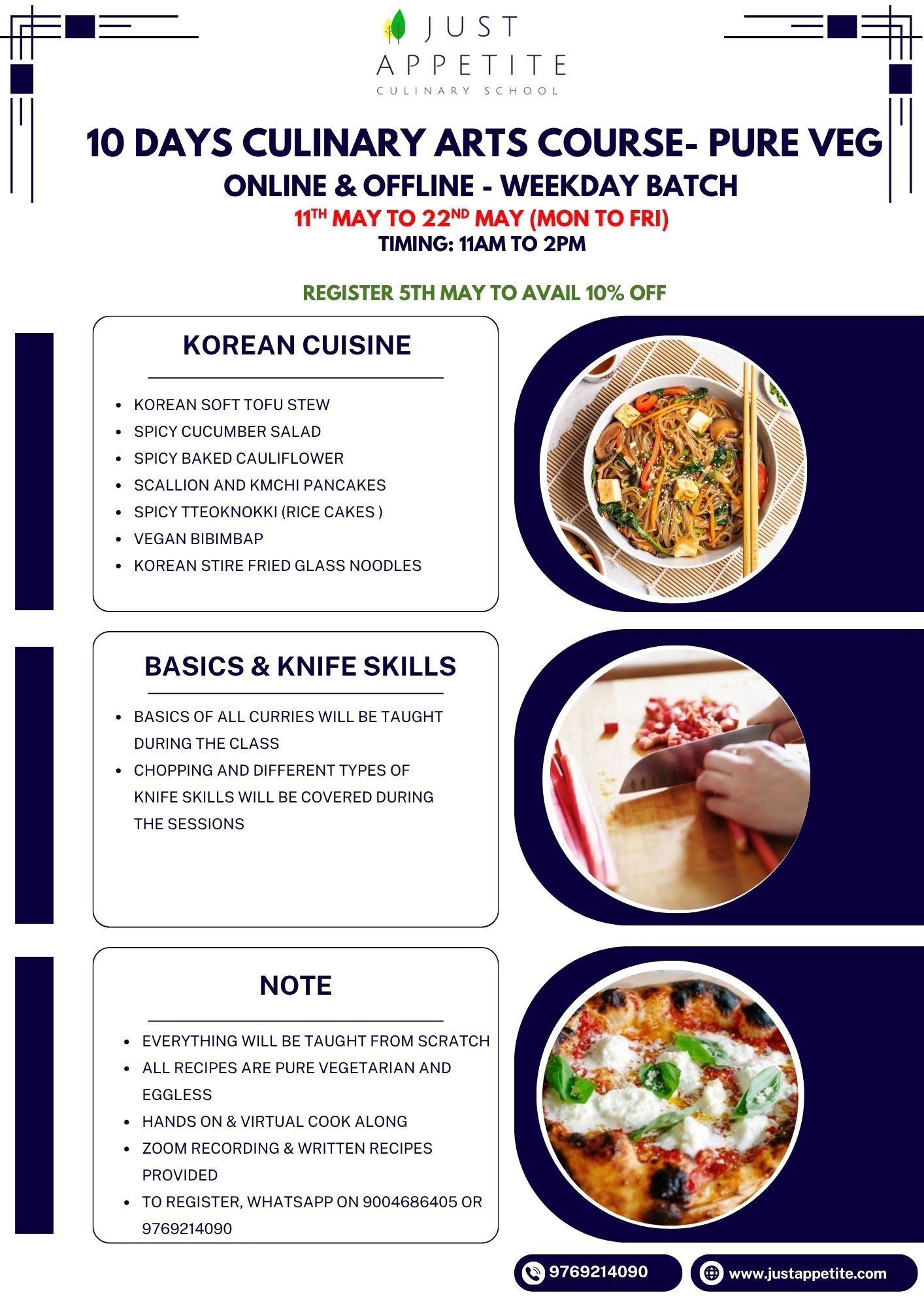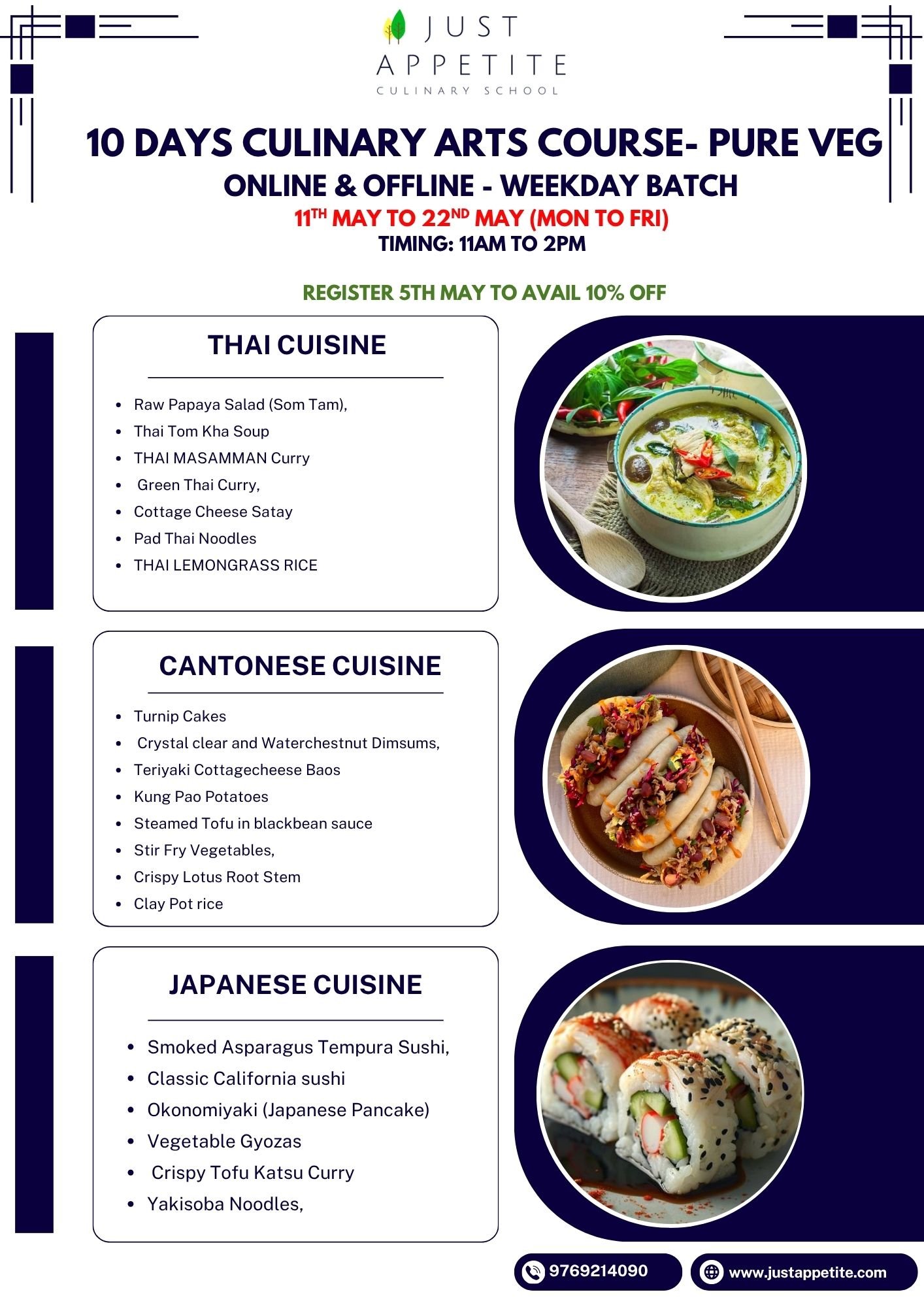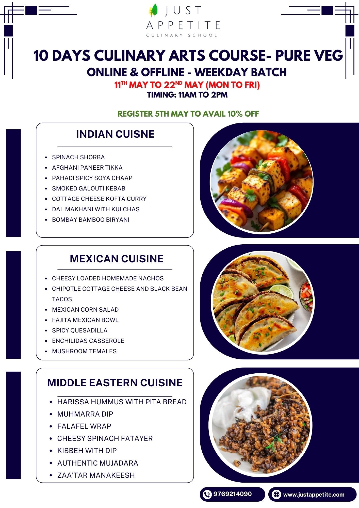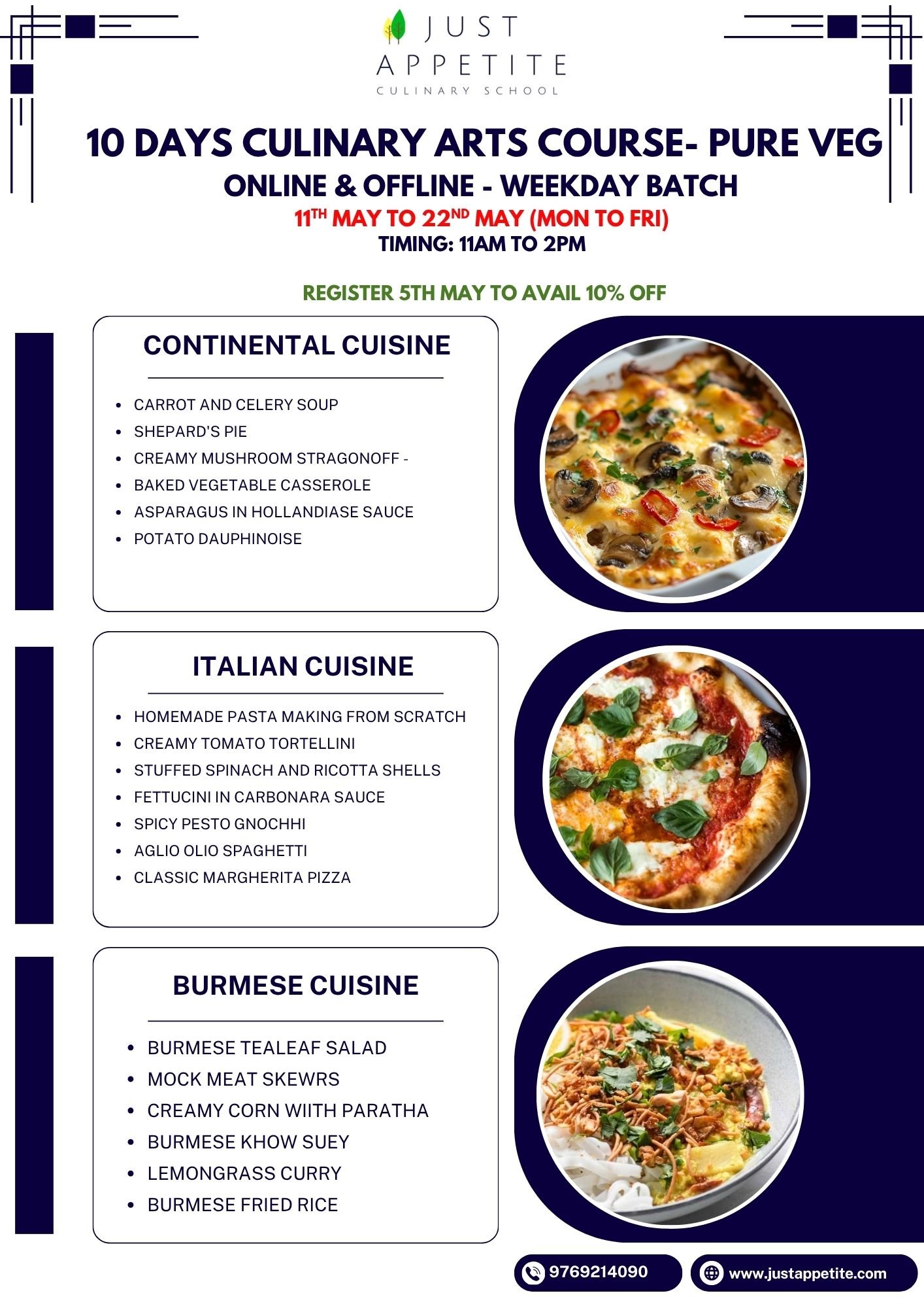 10 DAYS CULINARY ART COURSE – Weekday Batch – 11th May to 22nd May – Pure Veg