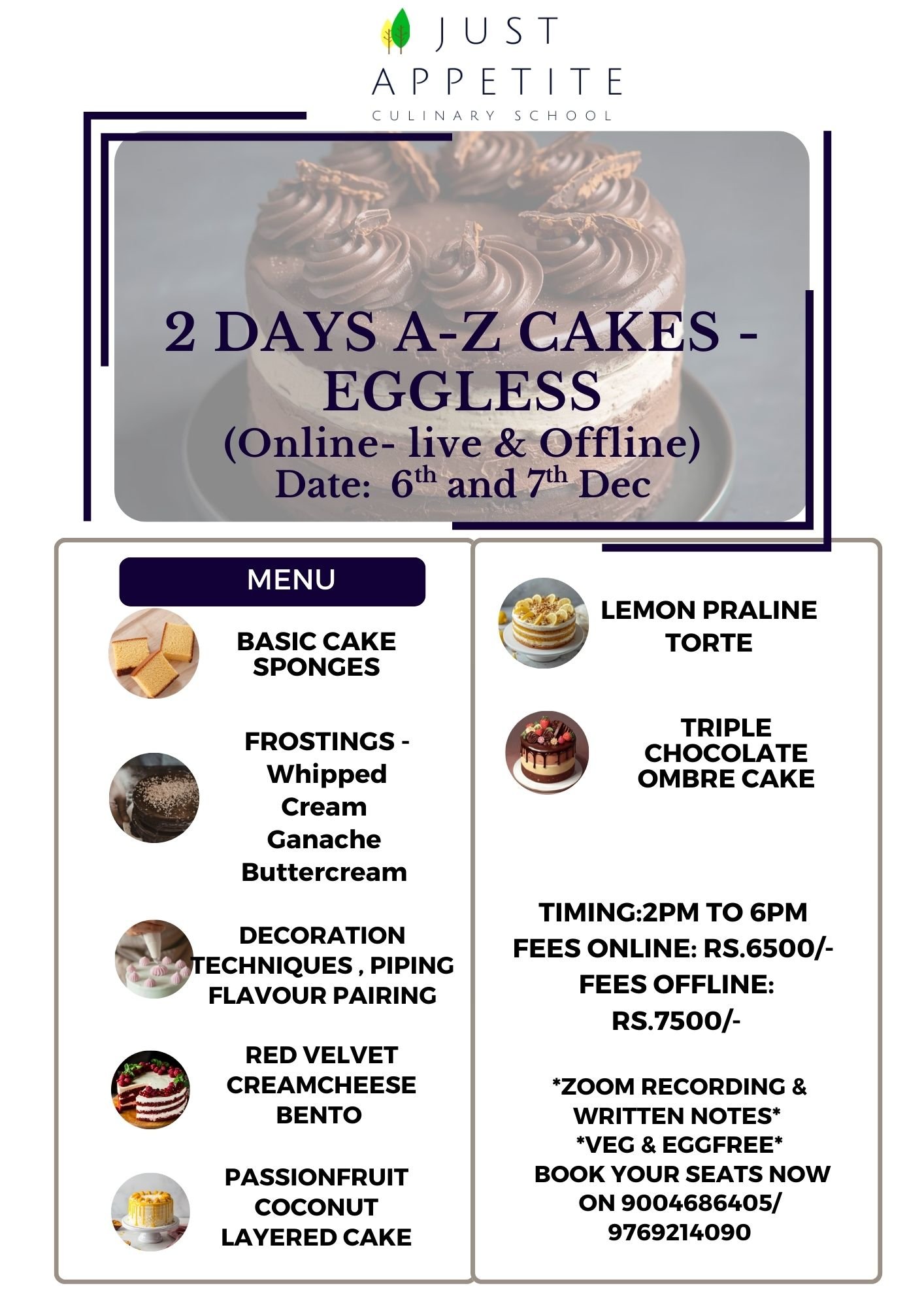 2 DAYS EGGLESS CAKES – 6TH & 7TH DEC