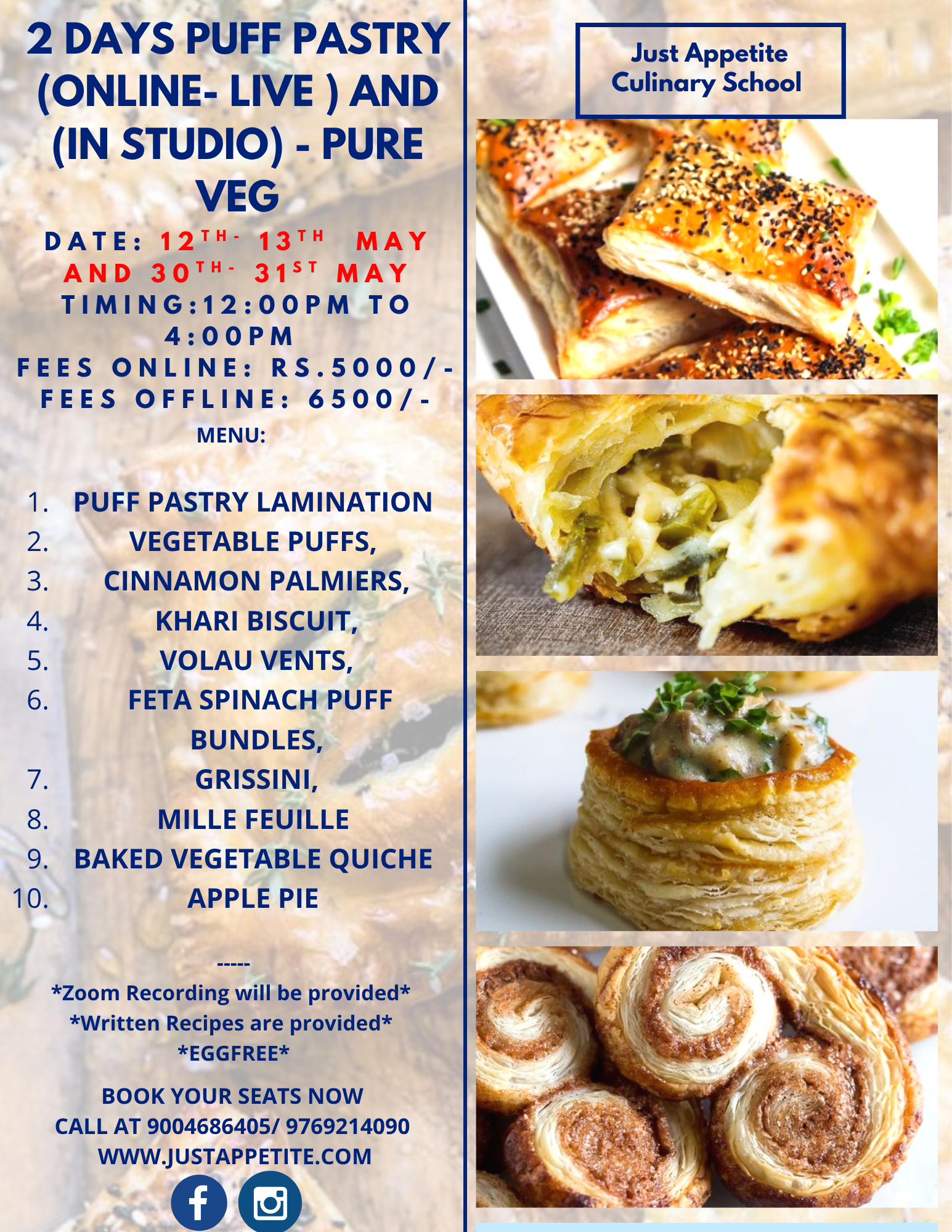 2 Days Puff Pastry 12th-13th May (Tue-Wed) & 30th-31st May (Sat-Sun)
