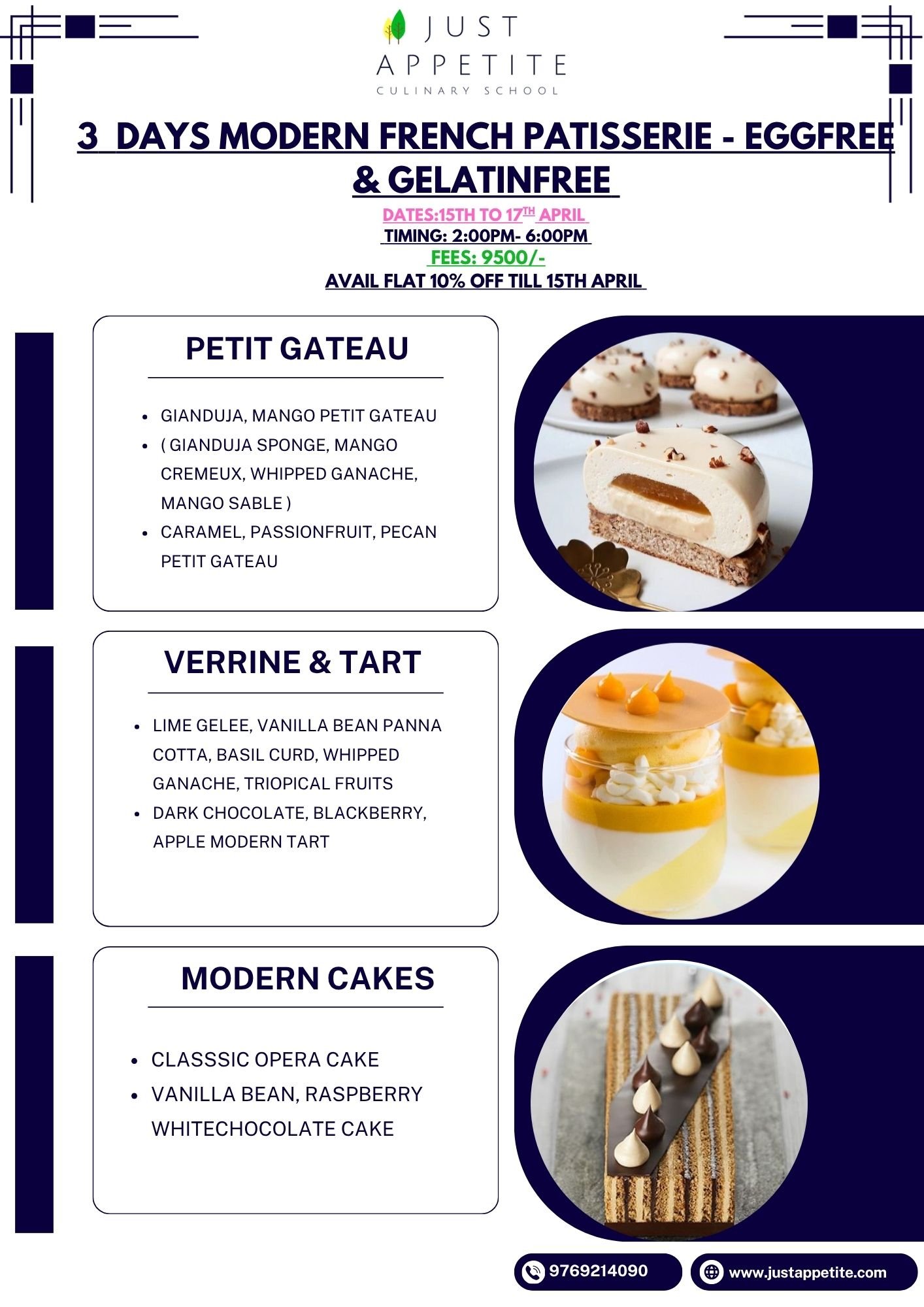3 Days Modern French Patisserie Course – Eggless – 15th to 17th April