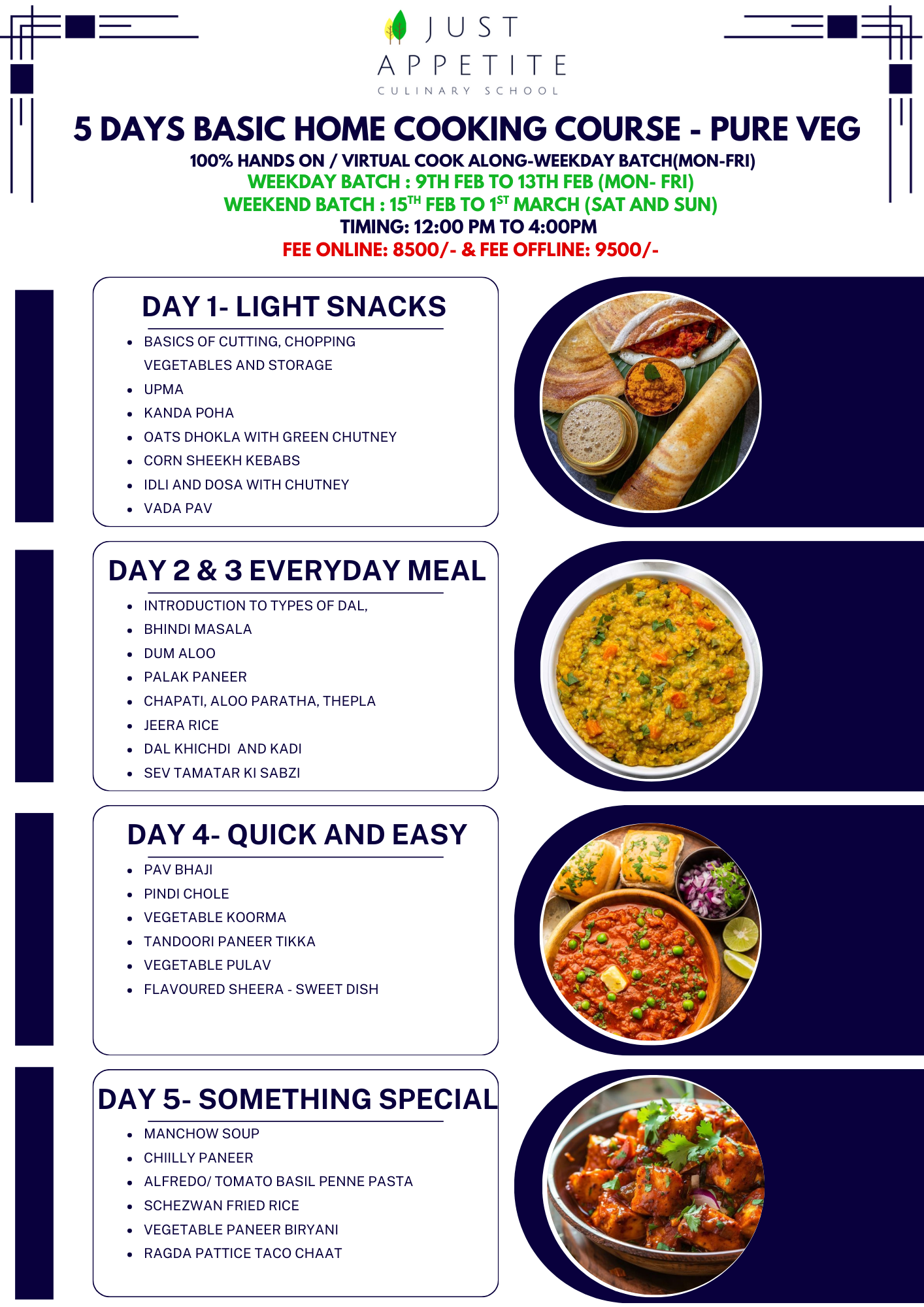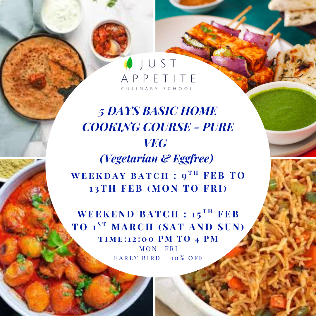 Become a confident home cook with this comprehensive 5-day course focused on 100% vegetarian and eggless dishes!