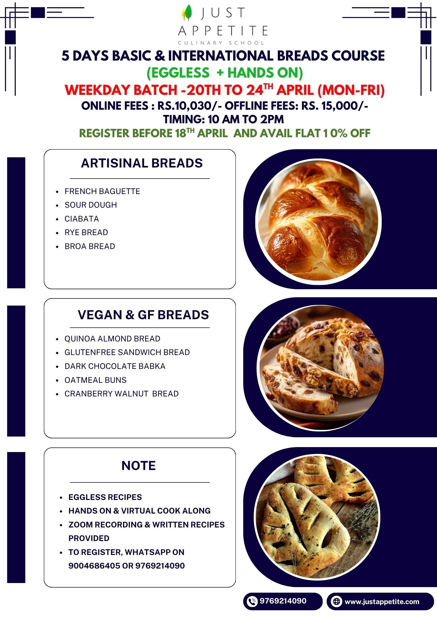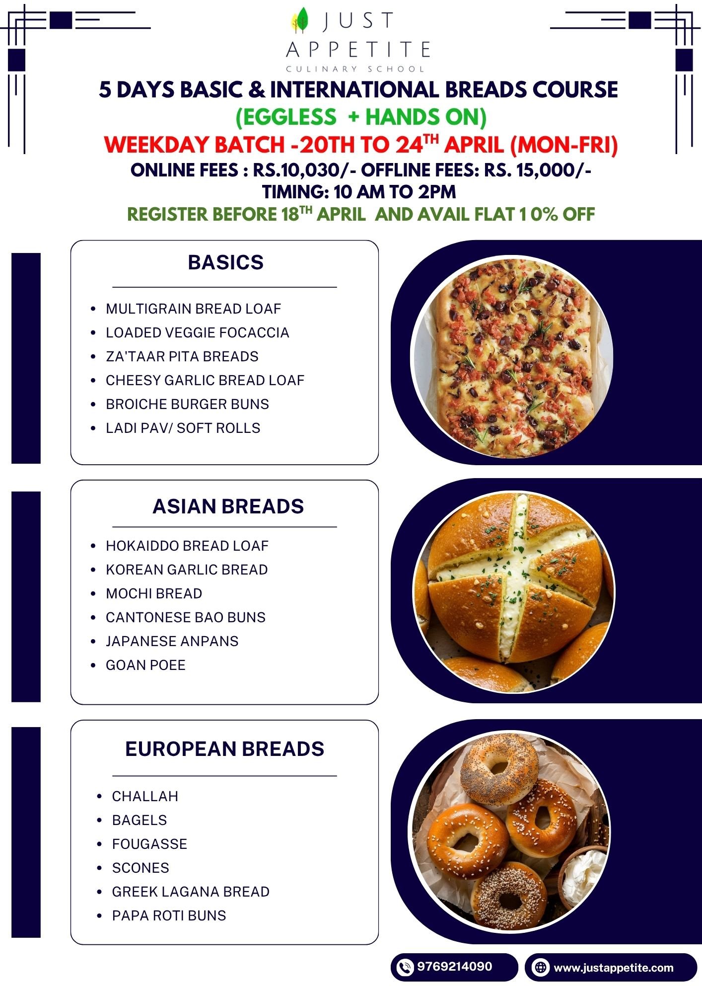 5 Days Basic to International Breads Course – Weekday Batch – 20th to 24th April