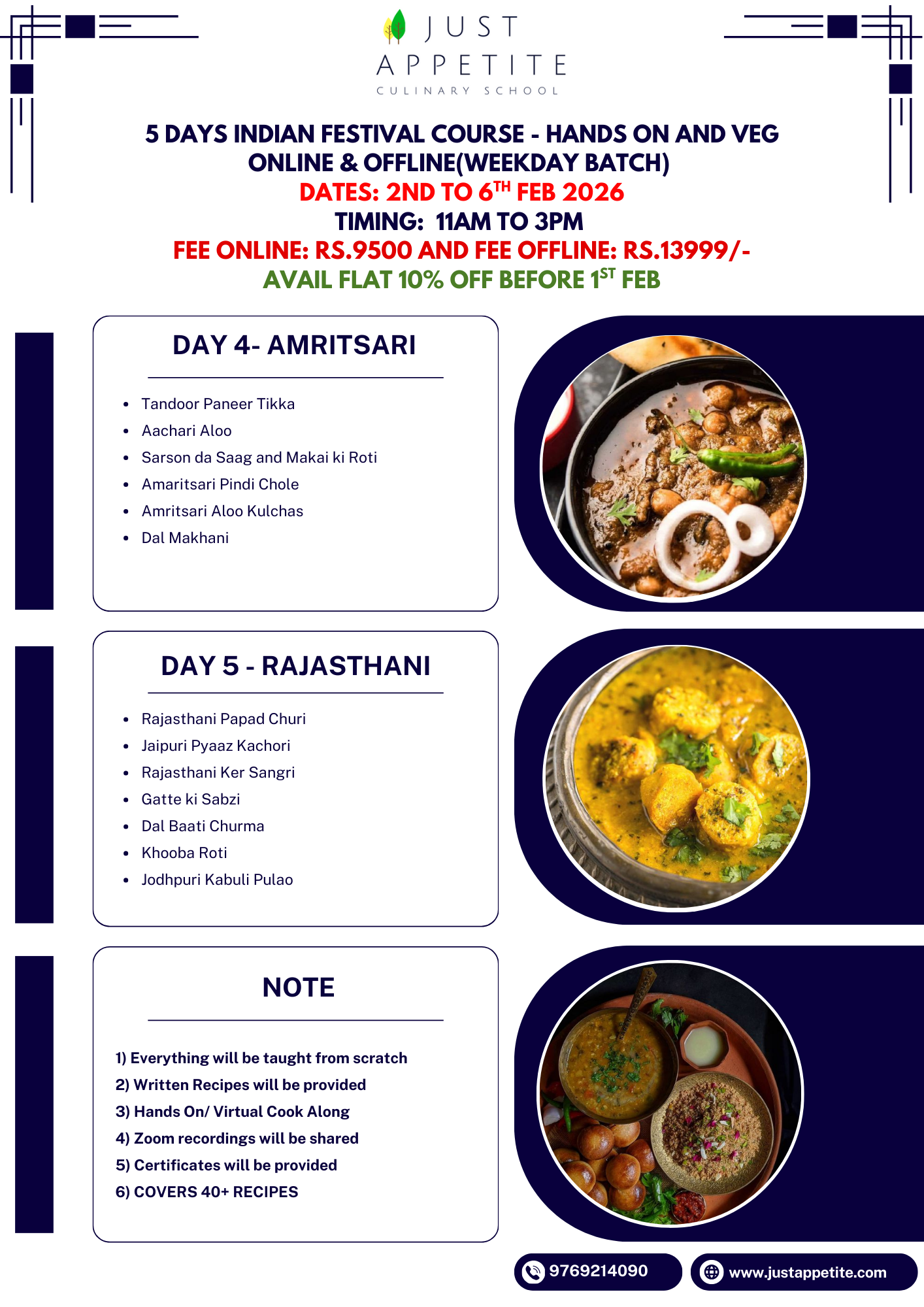 5 DAYS INDIAN FESTIVAL COURSE-2ND TO 6TH FEB – 11AM TO 3PM