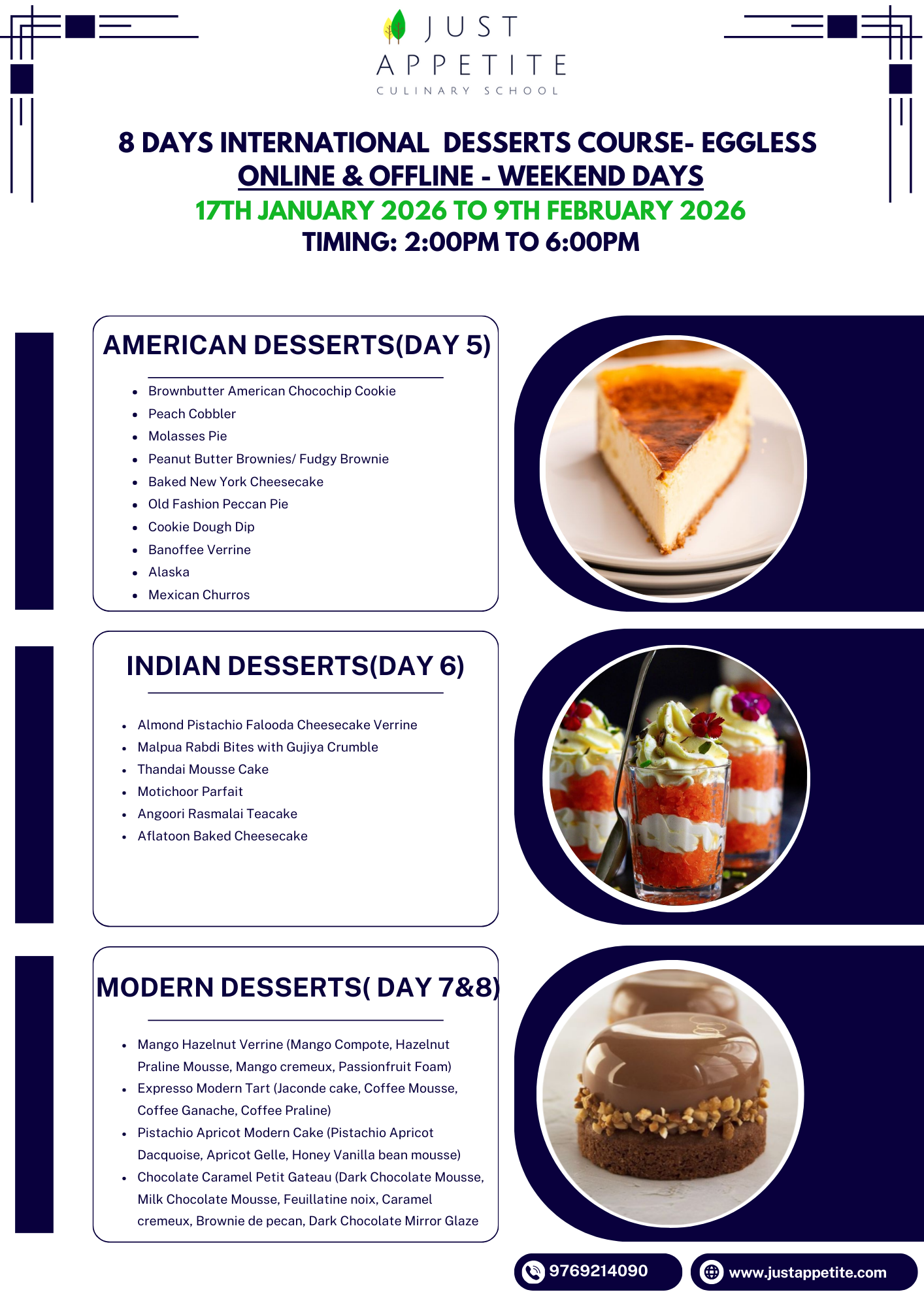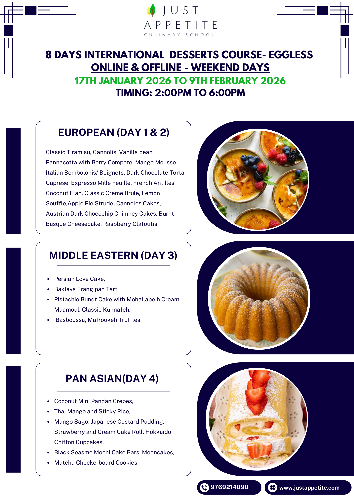 8 DAYS INTERNATIONAL DESSERTS COURSE-17TH JAN TO 21ST FEB – 2PM TO 6PM