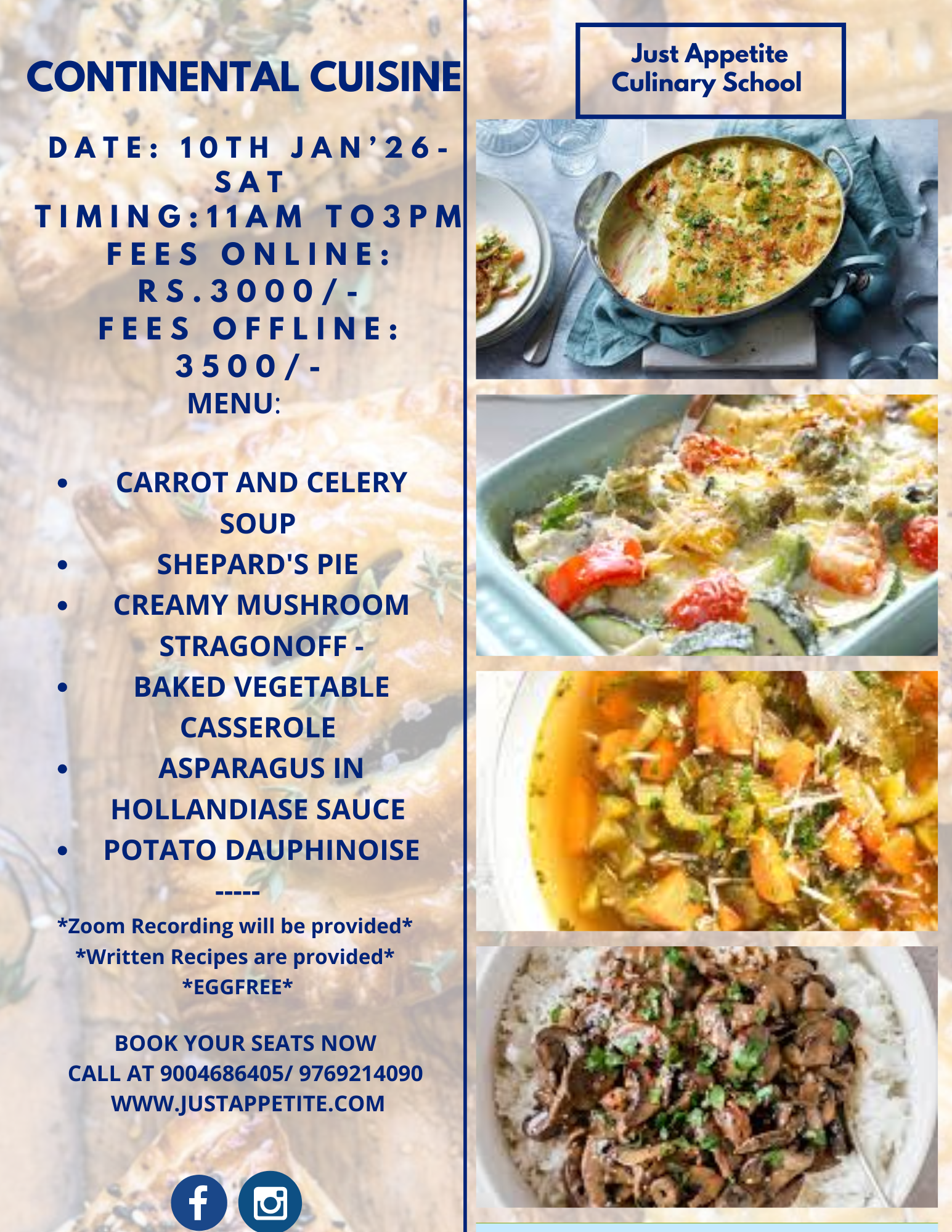 CONTINENTAL CUISINE -10TH JAN – 11AM TO 3PM