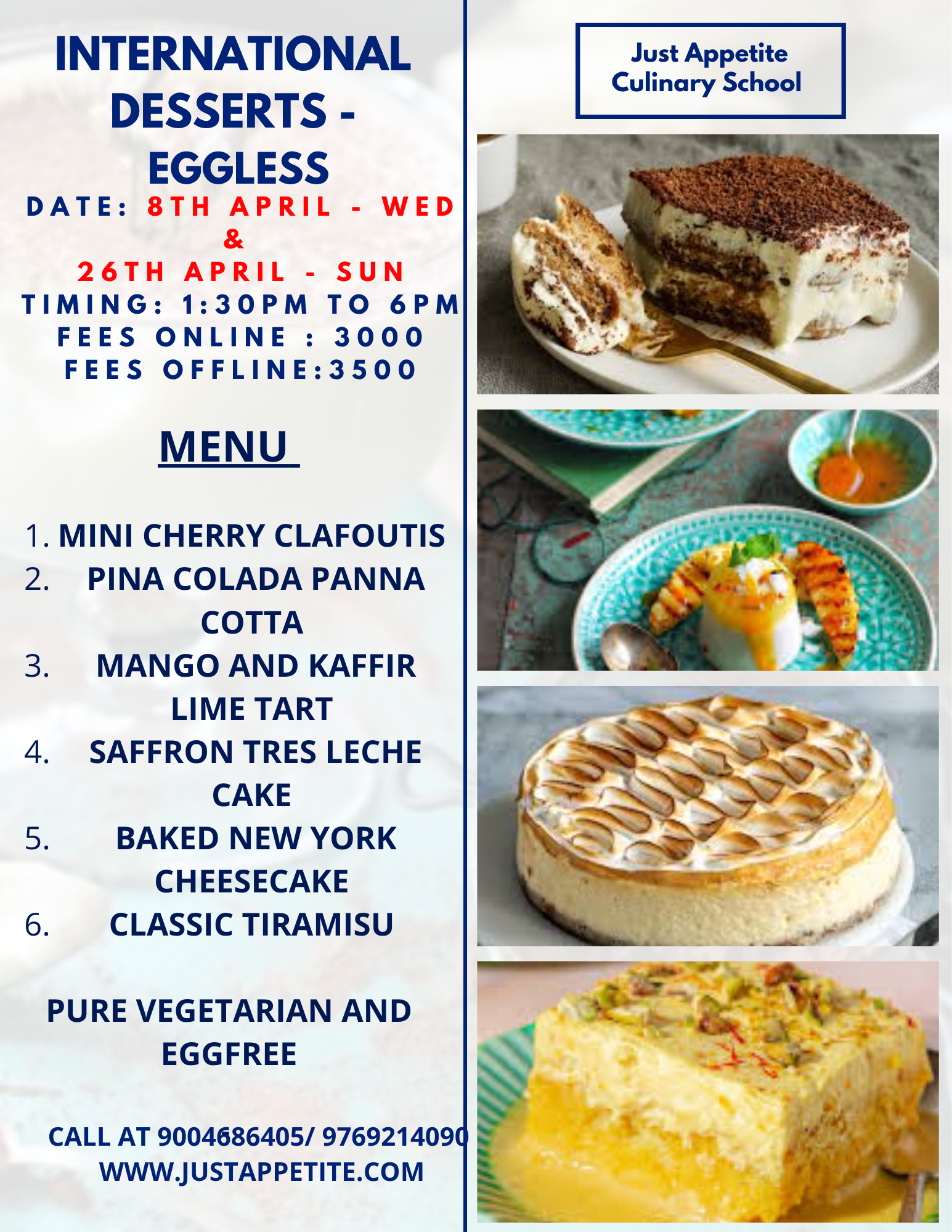 International Dessert – Eggless – Pure Veg – 8th April and 26th April