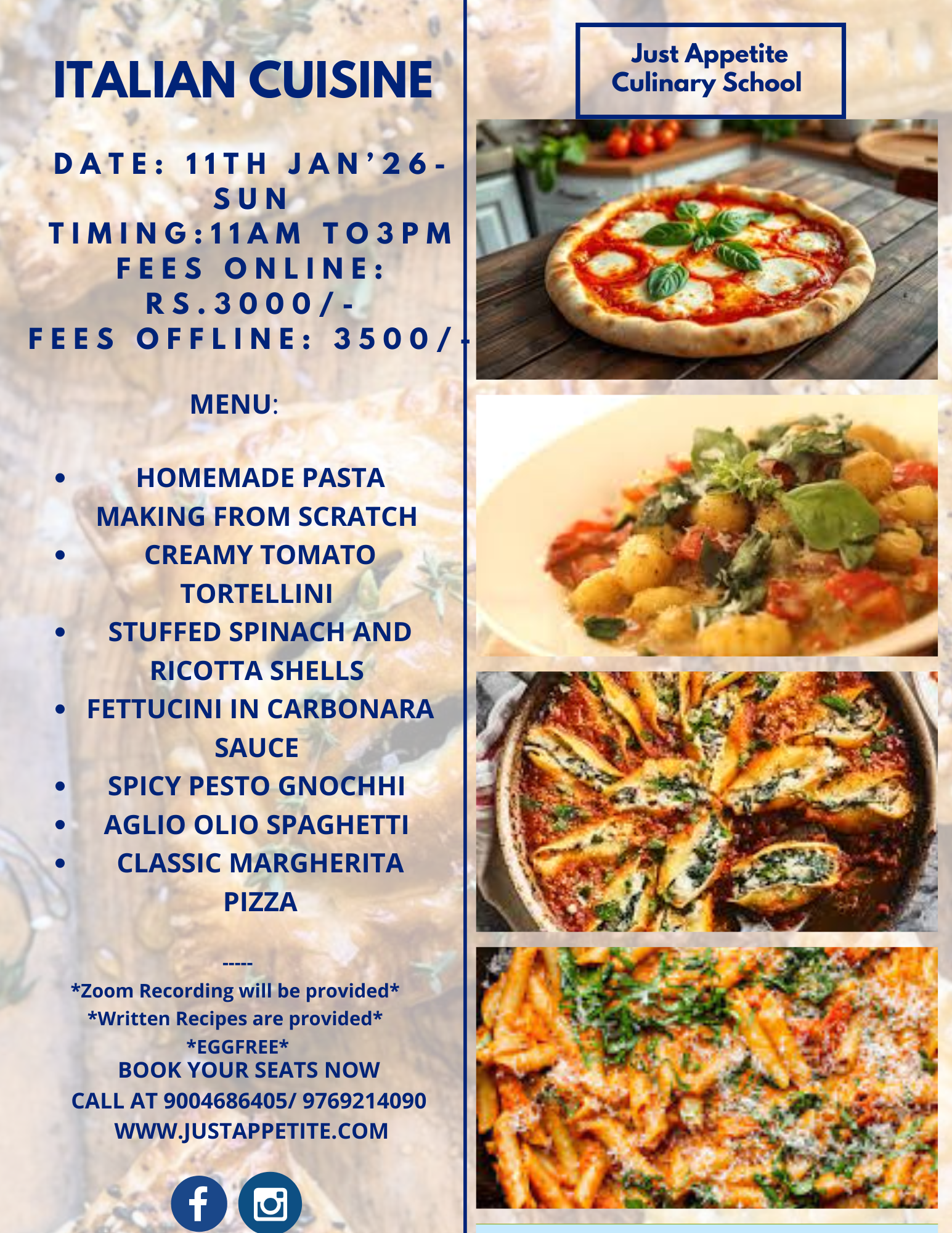 ITALIAN CUISINE-11TH JAN – 11AM TO 3PM